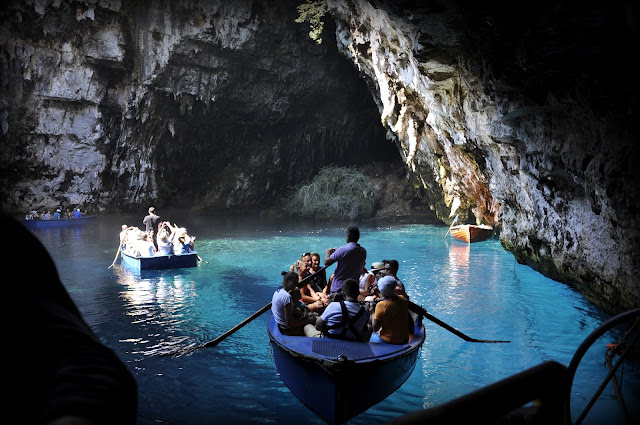 Jaskinia Melissani - jaskinia jest częściowo zalana przez słone jezioro.
